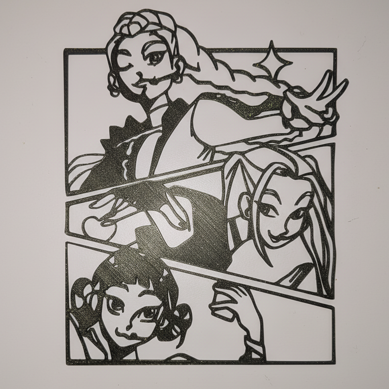 K-Pop Demon Hunter 3D-geprinte wandkunst – Unieke anime-geïnspireerde decoratie